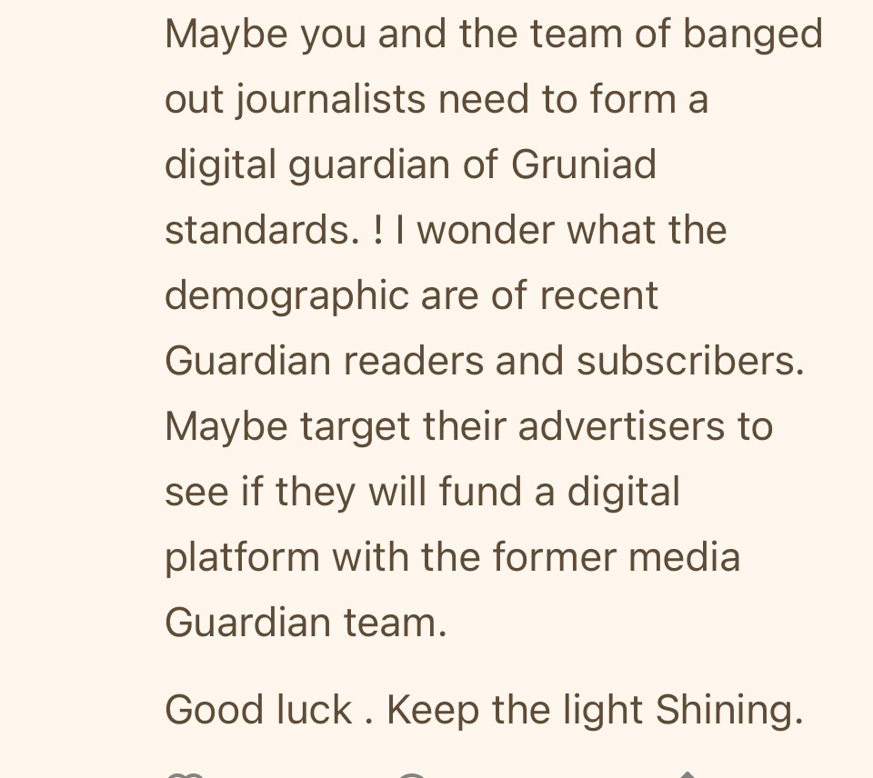 It’s four and a half months since we left the Guardian and to say that this week has felt cathartic is an understatement. I wrote here about the circumstances of our departure, a brutal bloodletting of journalistic experience and talent, in what was an opaque and unaccountable deal by the Guardian management.