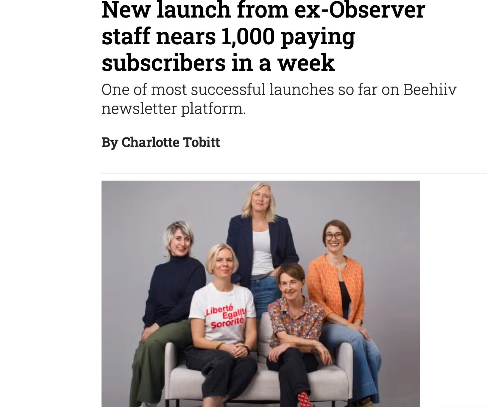 Last week, I explained how out of the rubble of my previous newspaper, five of us, all long-time colleagues from the Guardian & Observer – and all women! – have joined forces to plot a new, truly independent publication. And this week, in an adrenalin-fuelled whirlwind of action, we launched it.