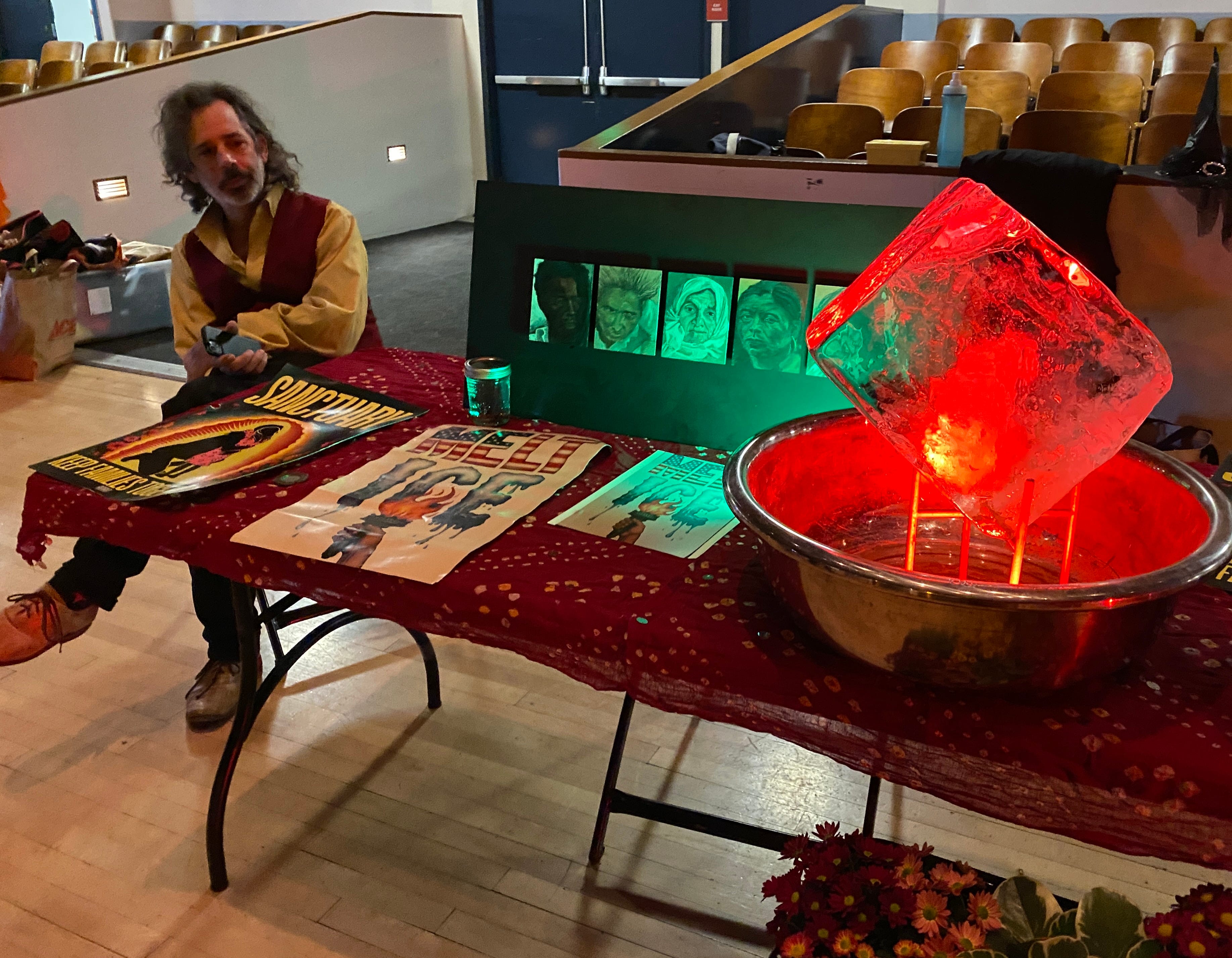 With the help of two friends, Lilith Eve and artist Carter Brooks, we created a Melt Ice Altar that was a spell, with a beautifully lit block of ice, a bowl of warm water that people could pour over it to melt the ice, and plants below to water with the melt. All through the ritual, I noticed people stopping for a moment to contribute to the melt, and the ice took on beautiful, sculptural shapes.