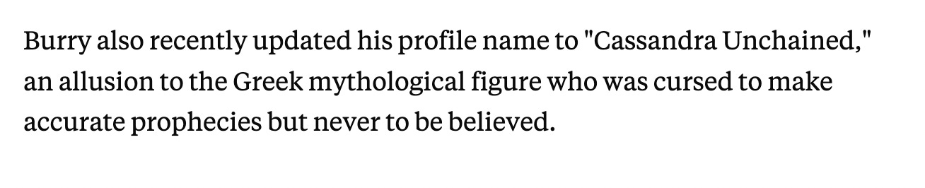 I didn’t include this yesterday because I didn’t want to get too far into the weeds. But Burry is interesting. Because of his profile. Because his actions it did spook the market. And because it led to a furious riposte from none other than…Alex Karp, CEO of Palantir, and long-time business partner of Peter Thiel.