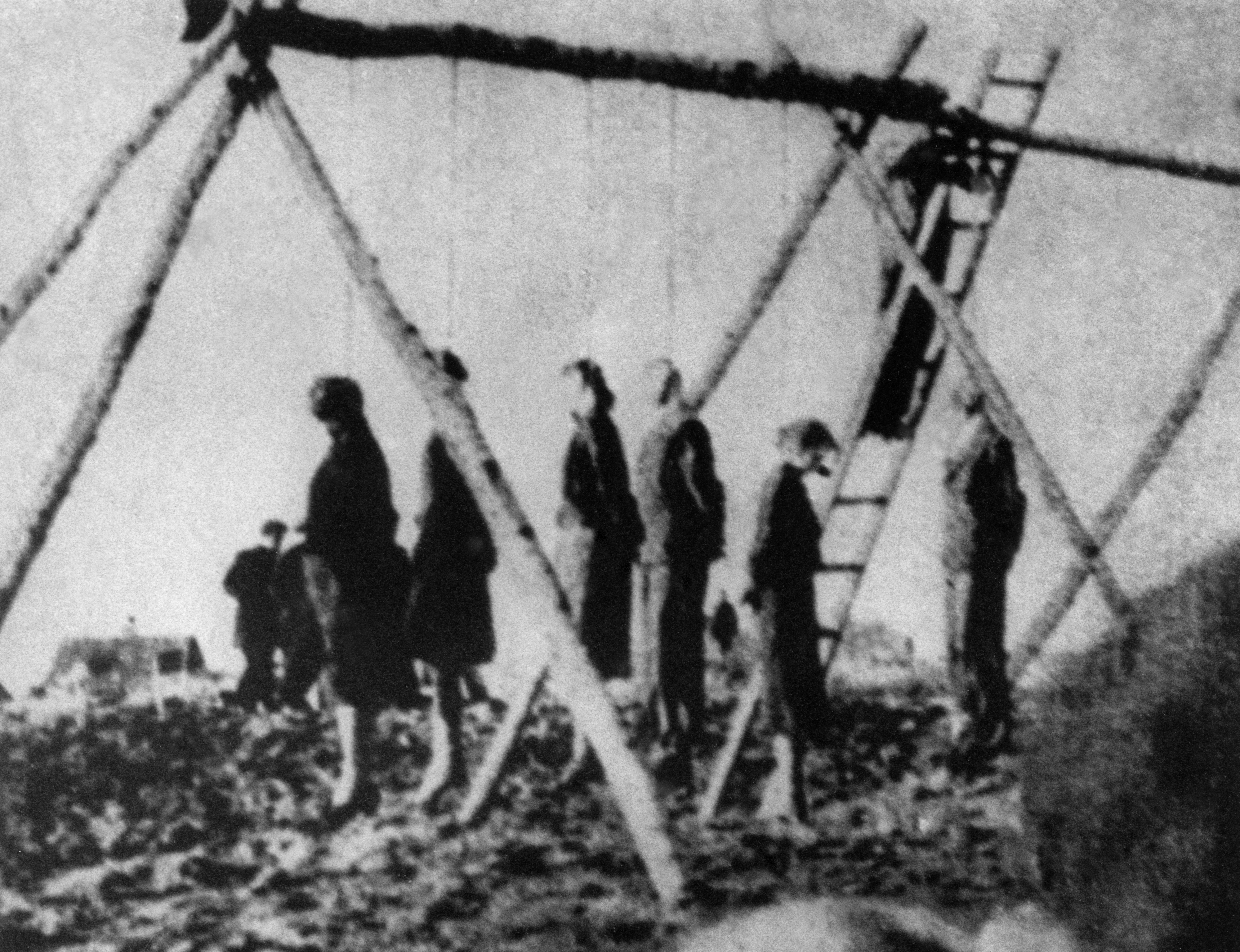 “They were calm and collected,” Lola said of the condemned. “They had their hands tied behind their backs. They said something before they died, but I don’t remember what. We were ordered to look at the hanging. We could not turn away our heads. As I watched, I saw what a horrific death it is — you can actually see life being squeezed out of the body. The face purple, red, almost swelling, as the hanging body twitches in last rebellion. The wife of one of the men, belly swollen with child, stood by the gallows the whole week as the Germans kept the spectacle on display.”