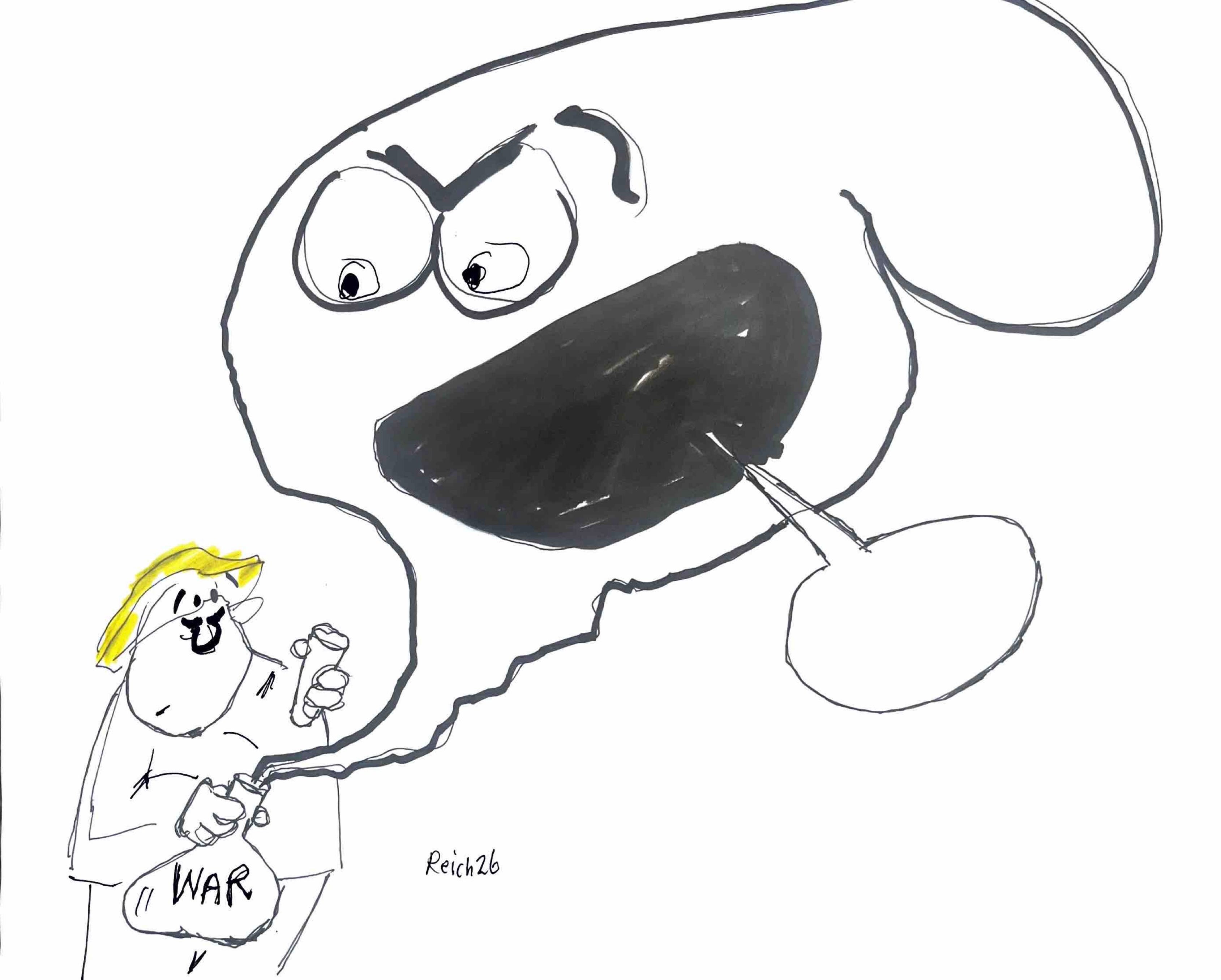 “I guess Trump never heard George Carlin’s famous quote: ‘Bombing for peace is like f**king for virginity.’”